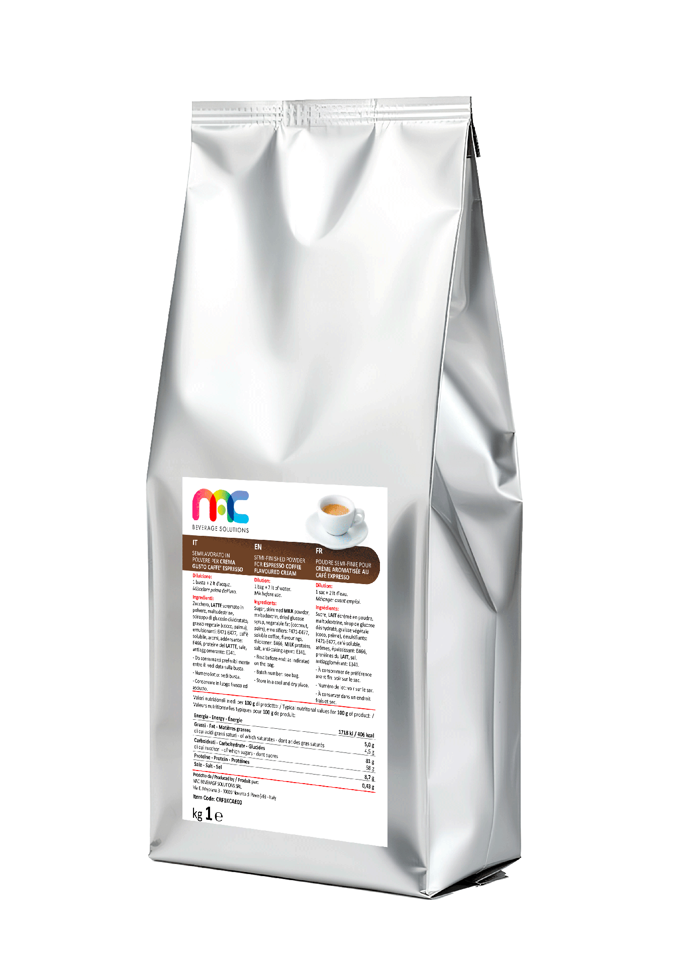 Although water-based, our powdered mixes surprise with their creamy, velvety texture that delights the palate with a full and intense flavor.
