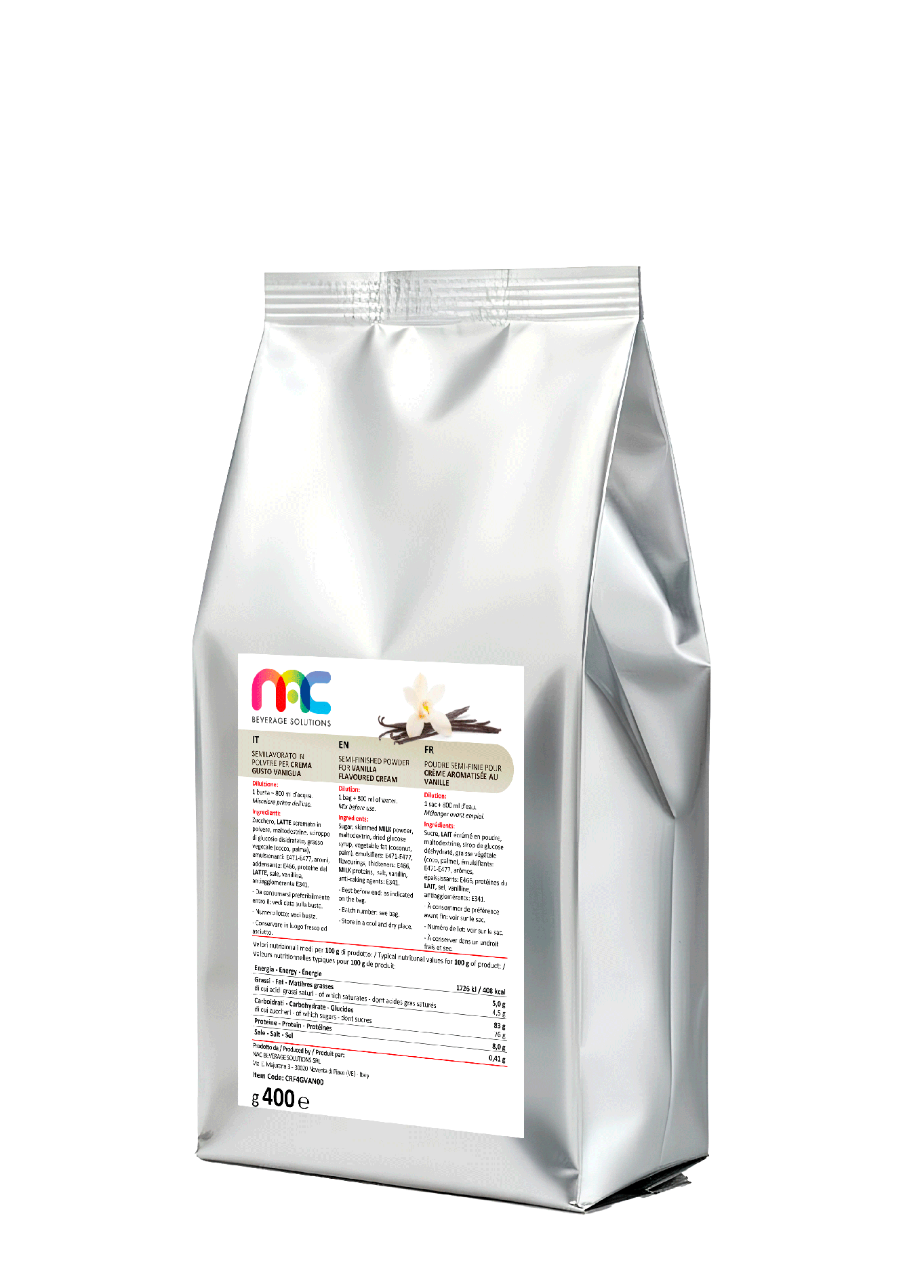Although water-based, our powdered mixes surprise with their creamy, velvety texture that delights the palate with a full and intense flavor.